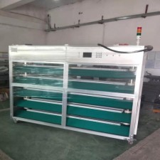 R:自動(dòng)下料裝置:自動(dòng)吸盤+自動(dòng)平移裝置:1套 1.自動(dòng)吸盤:2組(每組配4個(gè)吸盤) 2.寬窄自動(dòng)調(diào)節(jié):配有自動(dòng)壓力傳感器 3.平面輸送:滑動(dòng)導(dǎo)軌+氣動(dòng)頂升裝置 4.控制:自動(dòng)感應(yīng)連動(dòng)系統(tǒng)(無需人工操控) U:接駁臺(tái)(動(dòng)力滾筒線) :1臺(tái) 接駁臺(tái)作用:自動(dòng)滾筒輸送和升降機(jī)自動(dòng)無縫對(duì)接下料 導(dǎo)軌用材:冷板折彎制作,腳架采用方鋼焊接制作,底部安裝可調(diào)腳杯 滾筒:機(jī)械帶軸承滾筒 動(dòng)力:90W電子調(diào)速馬達(dá)