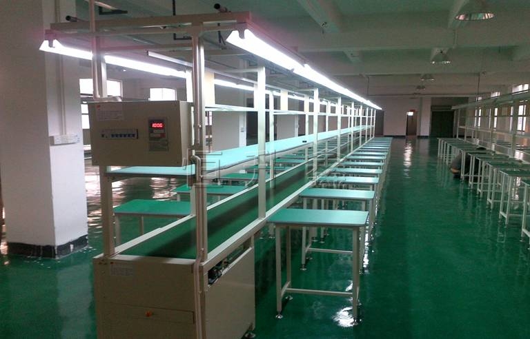 皮帶:寬度自定,綠色防靜電,采用無縫熱熔接駁;承托采用Φ25帶軸承鍍鋅滾筒,上層間隔250mm一條,下層間隔2m一條。