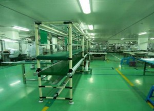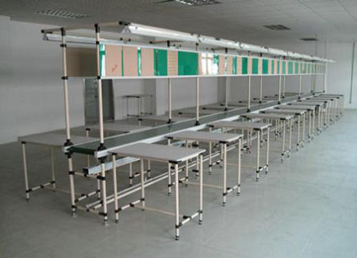 皮帶:寬度自定,綠色防靜電,采用無縫熱熔接駁;承托采用Φ25鍍鋅滾筒,上層間隔250mm一條,下層間隔2m一條。
