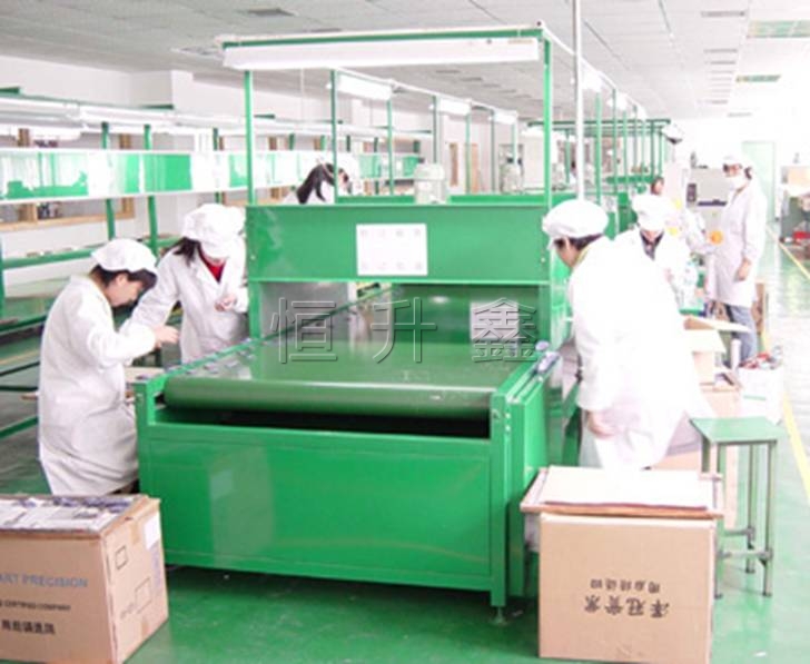 動(dòng)力:馬達(dá)采用1HP奧克力牌馬達(dá)傳送;牙箱采用70#(牙箱比為1:60),線體速度采用1HP臺(tái)產(chǎn)愛(ài)德利牌變頻器調(diào)節(jié),線體的速度0.1-2米/min可調(diào)。