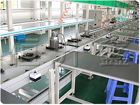 電控系統(tǒng):1套。工裝板:規(guī)格自定,臺板為T25中纖板,表面貼綠色防靜電膠皮,底面用T1.2灰色磨砂防火板,周邊T型膠條包邊。